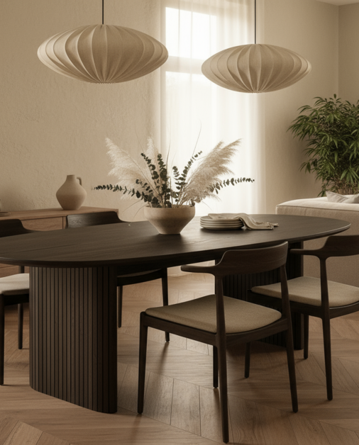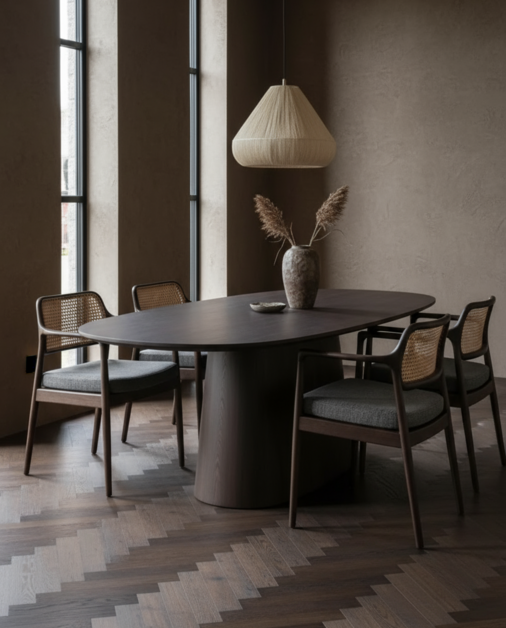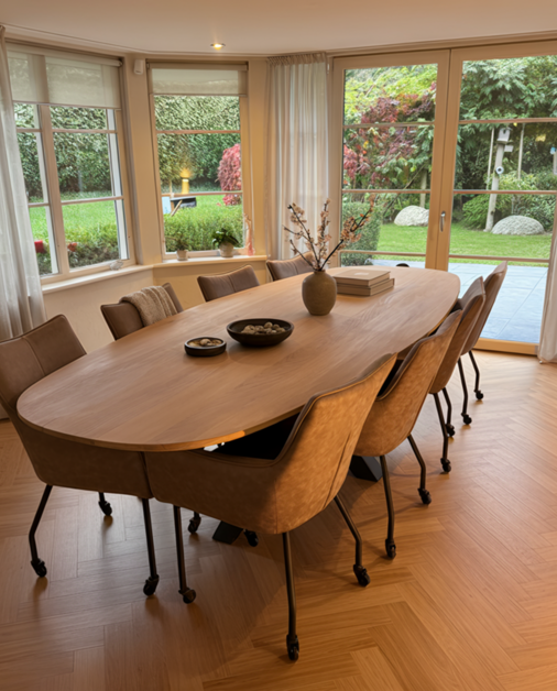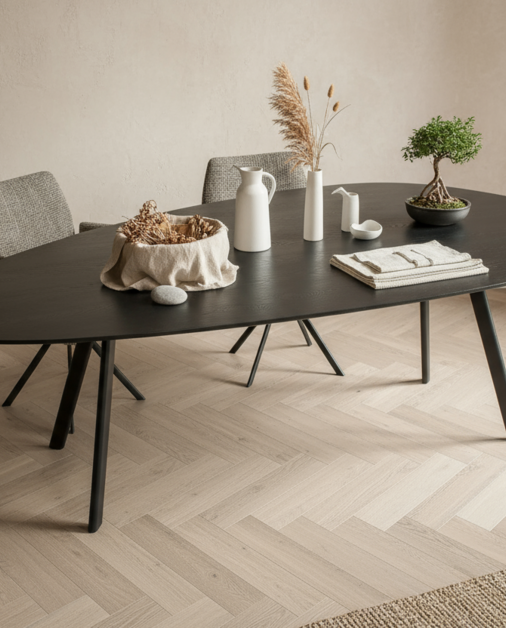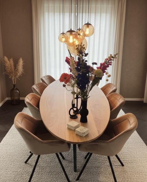 Deens ovaal, tijdloos design. Massief eiken met zwarte matrixpoot – onze absolute bestseller.